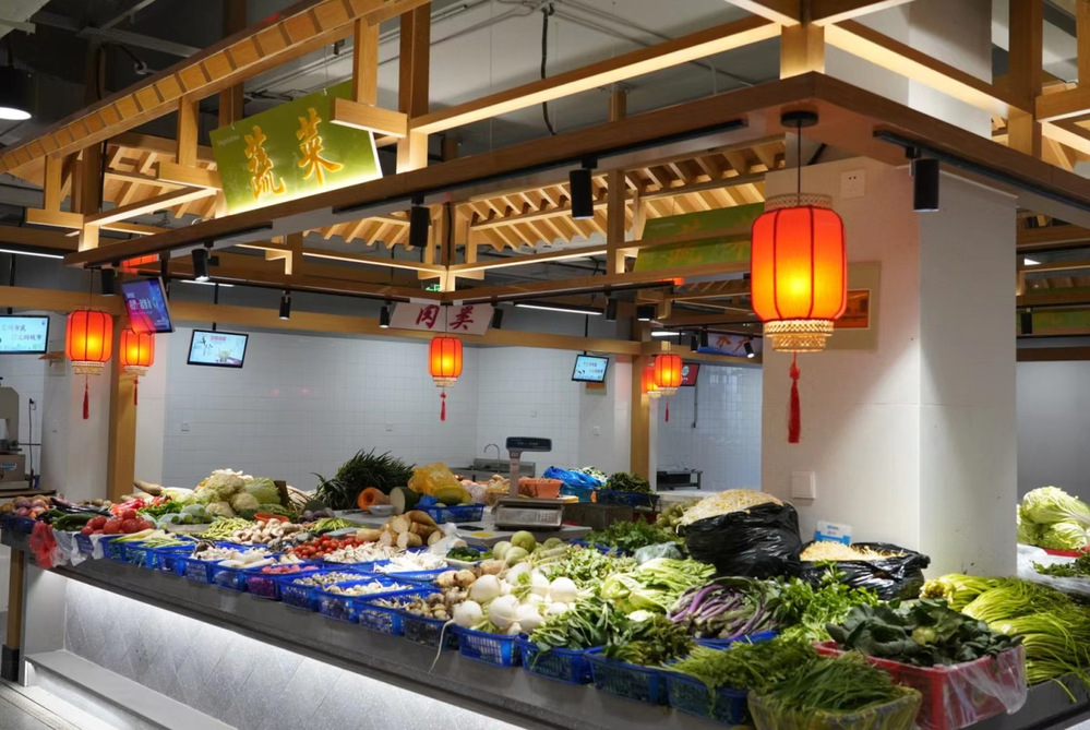 農(nóng)貿(mào)市場內(nèi)所有商家統(tǒng)一經(jīng)營、統(tǒng)一標識、統(tǒng)一著裝,配備了清潔車,明確專人全天候負責清掃,實行精細化管理;農(nóng)貿(mào)市場內(nèi)有檢測中心,打造食品準入、食品檢測、價格控制為一體的信息化平臺;市場通過監(jiān)控顯示,還可實時監(jiān)測市場動態(tài),護航食品安全和便民購物,為消費者提供安全、便捷、貼心的購物環(huán)境。