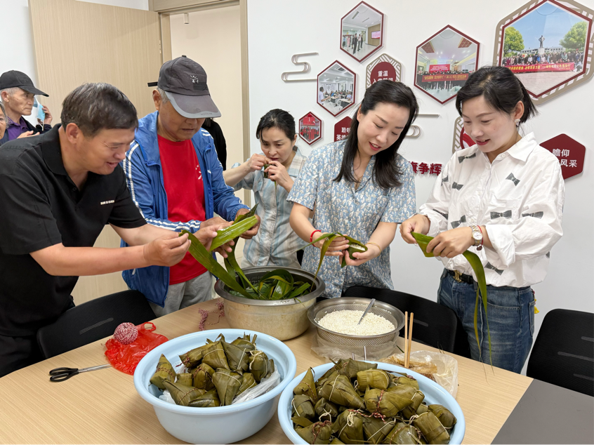 活動(dòng)現(xiàn)場(chǎng),志愿者們?cè)缭绲貙⑻崆芭莺玫呐疵?、紅棗、粽葉等材料整齊擺放在桌上。大家圍在一起,各自拿出看家本領(lǐng),捋粽葉、做漏斗狀、填糯米、壓緊實(shí)、封口、扎捆,巧手翻飛,不一會(huì)兒,形態(tài)各異的粽子便擺滿了桌子。活動(dòng)現(xiàn)場(chǎng)歡聲笑語(yǔ)不斷,粽葉的清香與大家的熱情交織在一起,濃濃的節(jié)日氛圍撲面而來(lái)。志愿者們將粽子遞到老人們手中,并與他們親切交談,詳細(xì)詢問(wèn)他們的身體狀況和生活情況,叮囑老人們要注意天氣變化,保重身體。老人們紛紛表示:“感謝長(zhǎng)江水務(wù)和社區(qū)對(duì)我們的關(guān)心,我們能在端午節(jié)吃到這么香甜的粽子,心里特別溫暖!”